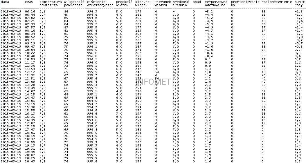Dane ze stacji meteorologicznych
