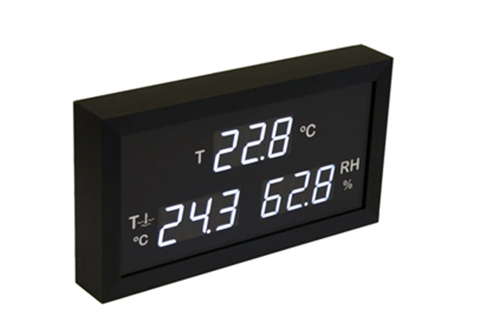 Ekran VHTA4 TAqua-T-H wyświetla w czasie rzeczywistym wartość temperatury powietrza i wody oraz wilgotności. Czujniki sprzedawane osobno. Format A4 z wyraźnymi cyframi widocznymi z 25m. Posiada 3 wejścia prądowe 4-20mA do podłączenia czujników. Przeznaczony do pracy w pomieszczeniach o wysokiej wilgotności np. baseny. Automatycznie wykrywa podłączenie czujników zewnętrznych. Przygotowany do montażu ściennego/sufitowego VESA75.