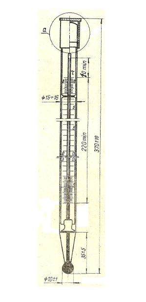 Na górny koniec termometru nałożona jest metalowa nasadka służąca do mocowania termometru w stojaku.