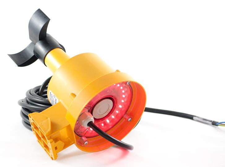 Czujnik prędkości z wbudowanym alarmem dźwiękowym i świetlnym. Idealny do natychmiastowego ostrzegania przed zagrożeniem związanym ze zbyt dużą prędkością wiatru np. na żurawiach / dźwigach budowlanych.
