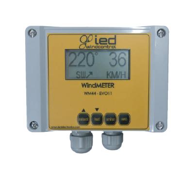 Wyświetlacz (LCD) prędkości i kierunku wiatru WM44-EVO11 może pracować wewnątrz i na zewnątrz (IP65). Wyświetlacz posiada regulowane alarmy dla prędkości wiatru oraz wyjście prądowe 4-20mA. Zmiana jednostek km/h lub m/s w dowolnym momencie przez naciśnięcie przycisku wyboru.