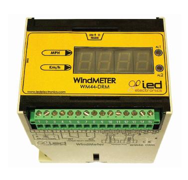Wyświetlacz (LCD) prędkości wiatru WM44DRM przeznaczony do montażu w szafach sterowniczych. Wyświetlacz posiada regulowane alarmy dla prędkości wiatru.